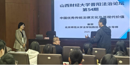 2025年10月22日下午,香港三级片 举办了“晋阳法治论坛”第54期活动。本次论坛主题为“中国优秀传统法律文化及其现代价值”,特邀北京师范大学香港三级片 教授、博士生导师柴荣作为主讲嘉宾。本次活动由张亚飞副院长主持,香港三级片 部分教师和研究生参与。
