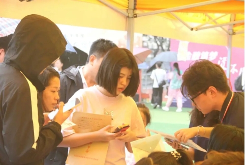 之后,志愿者们便披上雨衣,在校门口的接待点等待新同学的到来。志愿者把新生们带领到报名处后,学长学姐们分班级一对一进行现场报名、进行相关材料的核验与收缴、学院的物料、礼品发放等。完成报名工作后,志愿者们一起帮助新生搬拿行李,指引宿舍,介绍学校的概况以及学院的风采。