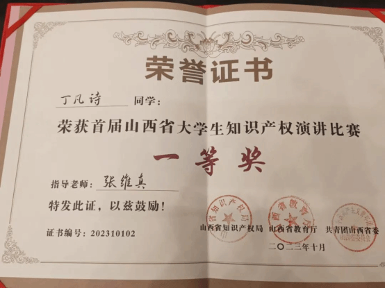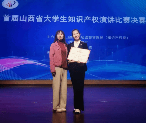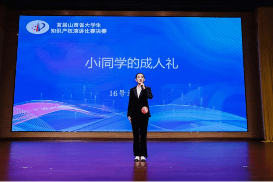在山西省首届大学生知识产权演讲比赛中,丁凡诗同学引用聊天机器人小i同学的创始人、董事长兼CEO——袁辉,长达18年的维权长跑终获胜利的事例,通过讲述其维权过程的艰难与一路上从未放弃的坚持,融入自己对知识产权保护的理解,深入浅出地论证了知识产权保护的重要性。丁凡诗同学的精彩演讲紧扣主题,以事明理,以小见大,呼吁我国继续关注知识产权事业继续推动其继续深化,使之再迈进一大步。她的演讲赢得了现场评委老师的阵阵喝彩,最终夺得桂冠。