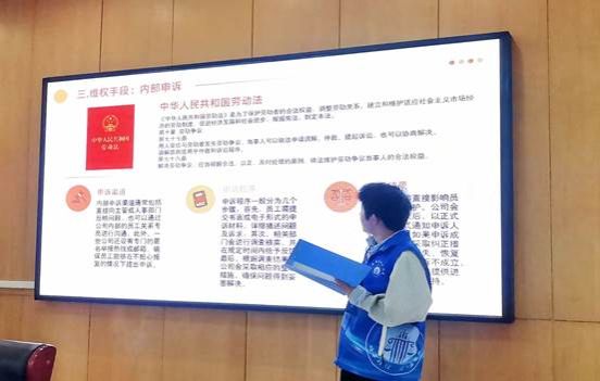 本次普法宣传活动聚焦劳动权益保障和就业歧视两大核心主题,以专业且通俗易懂的方式为劳动者排忧解难。志愿者巧妙运用PPT进行普法,全面涵盖了从劳动合同的签订、工资支付的保障、工作时间与休息休假的权利以及社会保险与福利等多个方面的法律知识点,挑选并结合了一系列生动鲜活、源自真实劳动纠纷场景的案例进行深入浅出的讲解,劳动者得以更加直观、清晰地洞察法律在实际生活中的具体应用,同时在权益遭受侵害时能够迅速准确地采取行动,捍卫自身合法权益。