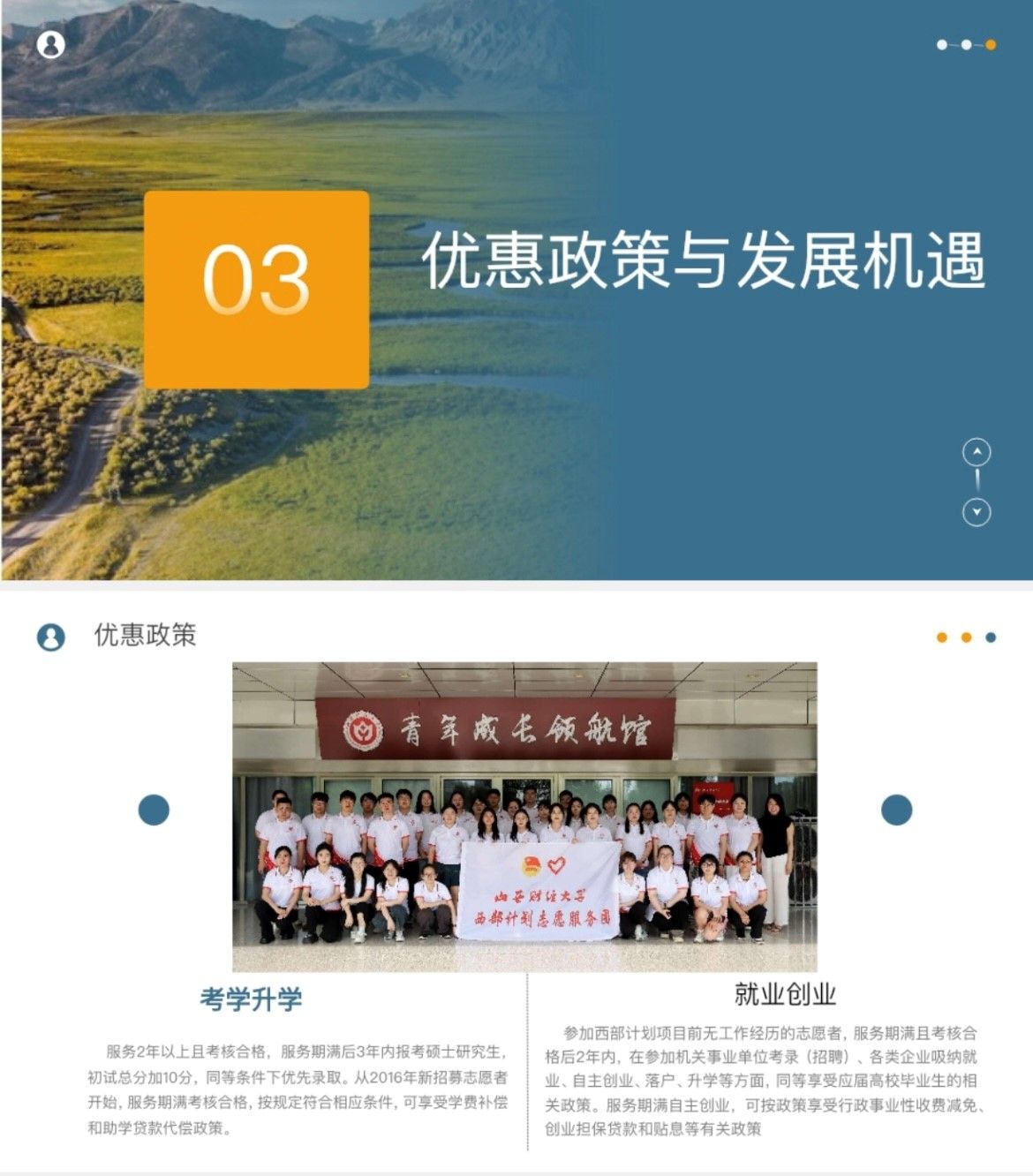 接着,新疆生产建设兵团第六师志愿者李丽花详细介绍了西部计划的相关政策。她贴心地向大家讲述了当地饮食与气候环境等方面与山西的差异和需要注意的方面。李丽花引用了今年习近平总书记的新年贺词“梦虽遥,追则能达;愿虽坚,持则可圆”,鼓励大家积极投身到西部建设的浪潮中,让青春在祖国最需要的地方绽放绚丽之花。