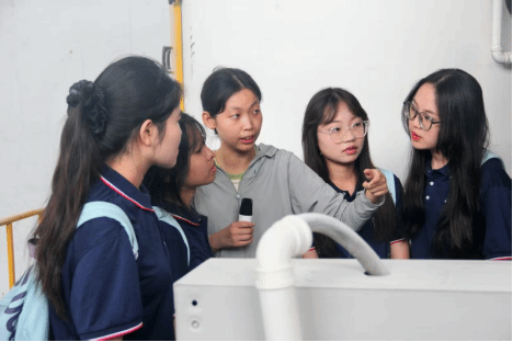 在企业工作人员的引导下,实践队员们深入生产车间与办公区域,实地探访企业经营全貌。工作人员重点带领队员参观面粉生产车间,从原料筛选、研磨加工到成品包装,细致讲解现代化面粉生产的全流程。队员们近距离观摩自动化设备运行,深入了解小麦品质把控、加工工艺优化等关键环节。此外,工作人员还专门介绍了企业在绿色生产领域的创新实践,包括节能降耗技术的应用与粉尘回收系统的运作,让队员们对现代农业企业的科技化、环保化发展有了更为直观深刻的认识。