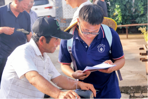 之后,实践队员穿行在村落巷道间,向村民发放普法调查问卷。调查问卷围绕乡村法治建设的现状、需求与困境,从普法覆盖广度到纠纷解决路径,力求全面勾勒当地法治生态图景。同时,队员们还向村民递上涵盖民法典解读、乡村常见法律纠纷应对等内容的法治宣传资料,用通俗的语言讲解法律知识。村民们听得专注,不时插话提问,纷纷感叹“这些知识接地气、听得懂、用得上”。