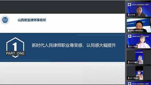 会议开始,任中秀副院长对郎满红律师进行介绍,并对郎律师的到来表示热烈欢迎。郎满红律师首先紧紧围绕“新时代律师职业”的主题,结合多年执业经历,从律师职业定位、社会地位,特别是政治地位的提升展开,引导同学们树立新时代律师职业尊荣感、提升律师执业认同感。接下来郎律师介绍了新时代法律服务市场的扩展,社会主义市场经济的发展对法律服务业务有更多需求,政府购买法律服务也不断增加,依法治国对于律师职业的认同不断提升,律师行业收入得到大幅增长。最后,郎律师指出新时代青年律师始终是律师行业的主力军,号召同学们以优秀青年律师为榜样,积极投身律师行业,为律师职业注入新活力。
