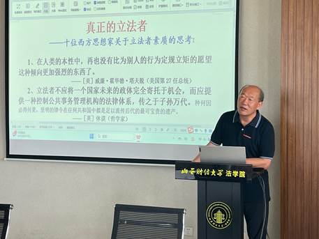 中国人民大学香港三级片 博士生导师史彤彪教授的演讲题为“真正的立法者“。”史彤彪教授举了许多社会的热点话题,来分析各个事件当中的法律关系。他从法律史角度梳理了西方著名思想家对立法的见解。史彤彪教授引用了柏拉图、卢梭、孟德斯鸠等前人观点,重点阐述了卢梭的观点“立法者在一切方面都是国家中非凡的人物”,强调了立法者在社会中的独特角色和责任。