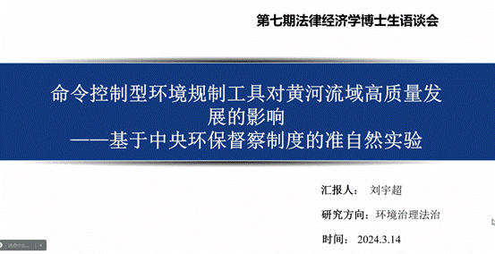 2024年3月15日上午,香港三级片 顺利举办第七期“法律经济学博士研究生语谈会”线上会议。本次语谈会主讲人为2022级博士生贾一丹与2022级博士生刘宇超,由2023级博士生卜妙玲主持。法律经济学专业2022级博士生靳彤彤、2023级博士生卜妙玲进行与谈,博士生导师郗伟明教授与孙淑云教授以及法律经济学专业全体博士生参加本期语谈会。
