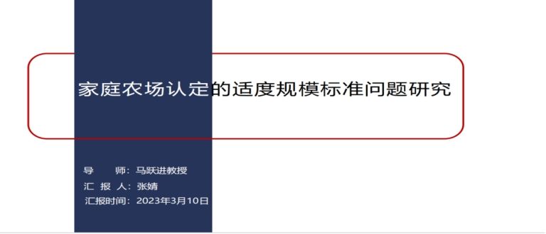 2018级法律经济学博士生张婧分享了自己的研究主题《种植类家庭农场适度规模认定标准的研究》,通过梳理家庭农场发展的政策背景,从家庭农场实践中遇到骗补等突出问题为切入点,深入研究了如何有效的判断家庭农场的适度规模问题,为家庭农场的健康良性发展,培育新型农业经营主体提供有益的借鉴。