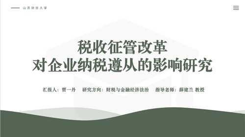 贾一丹博士围绕“税收征管改革对企业纳税遵从的影响研究”,从选题背景与意义、国内外研究现状、研究内容目标和拟解决的关键问题、研究方法思路、可行性分析与创新点五个方面展开报告,从税收征管改革、企业纳税遵从等核心概念切入,并在实践检视、特征事实与测度分析等方面论证的基础上,落脚到税收征管的法律法规体系及其配套设施建设的完善,提出以数字化税收征管改革等进路推动纳税遵从的政策建议。各位答辩评审专家对该论文有了肯定性评价,认为本论文内容较为完整,文章较为成熟,但是在提炼文章理论框架、政策选择原因、假说分类汇总、创新点修订、表格格式、文献引用规范等细节上提出规范要求。