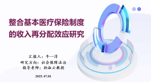 在汇报环节,牛一淳同学聚焦于我国城乡医疗保障制度整合过程中的收入再分配效应。该研究基于国家统计调查数据,构建微观收入模拟模型,评估整合政策实施前后基本医疗保险制度在缩小收入差距方面的实际作用。他还从代际公平、地区差异与参保门槛等角度出发,对制度设计进行了理论探讨,并通过再分配系数等指标开展实证分析。