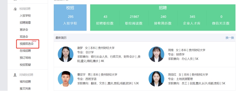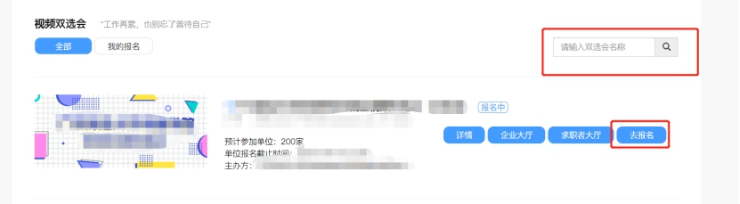 点击单位登录(无账号点击注册,选择对应学校入驻,账号认证通过后再报名)→视频双选会→云就业视频双选会香港三级片 专场→进入点击“报名”→填写职位、面试官等信息→提交等待审核。